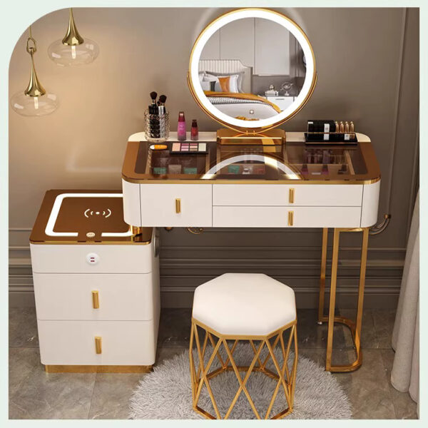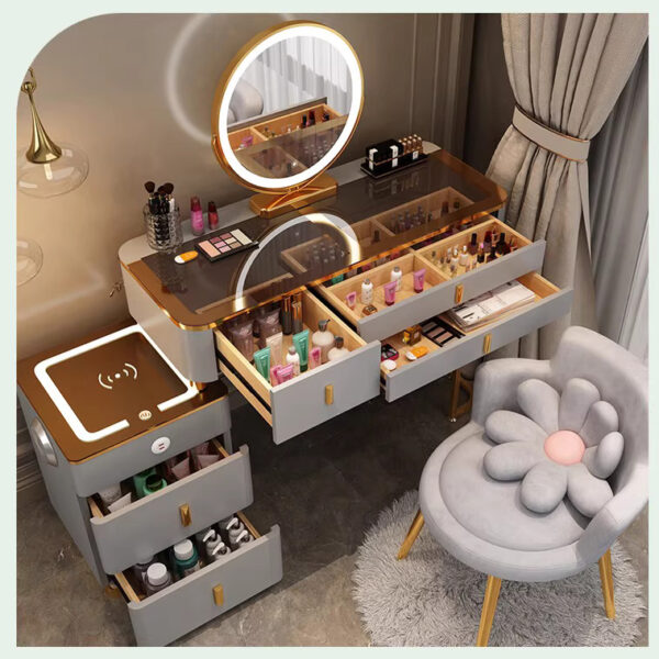 3 ngăn kéo chính với kích thước rộng, có thể lưu trữ mỹ phẩm, phụ kiện, máy sấy, skincare,…