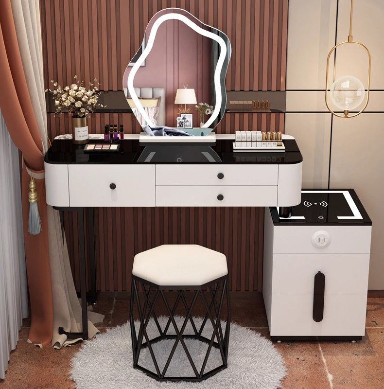 Một trong những ưu điểm vượt trội của mẫu bàn trang điểm có ngăn kéo và tủ phụ là khả năng tối ưu không gian lưu trữ: