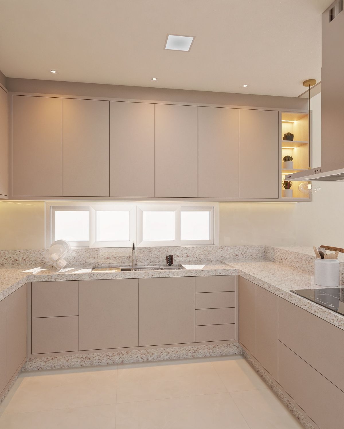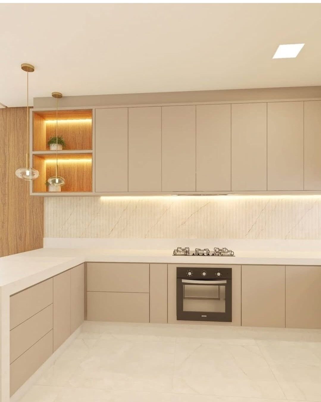 ✅ Tông be trang nhã, hiện đại: Màu sắc nhẹ nhàng giúp không gian bếp trở nên rộng rãi và dễ phối hợp nội thất.