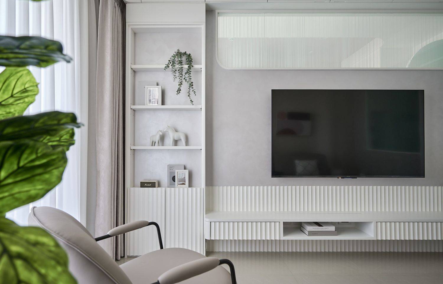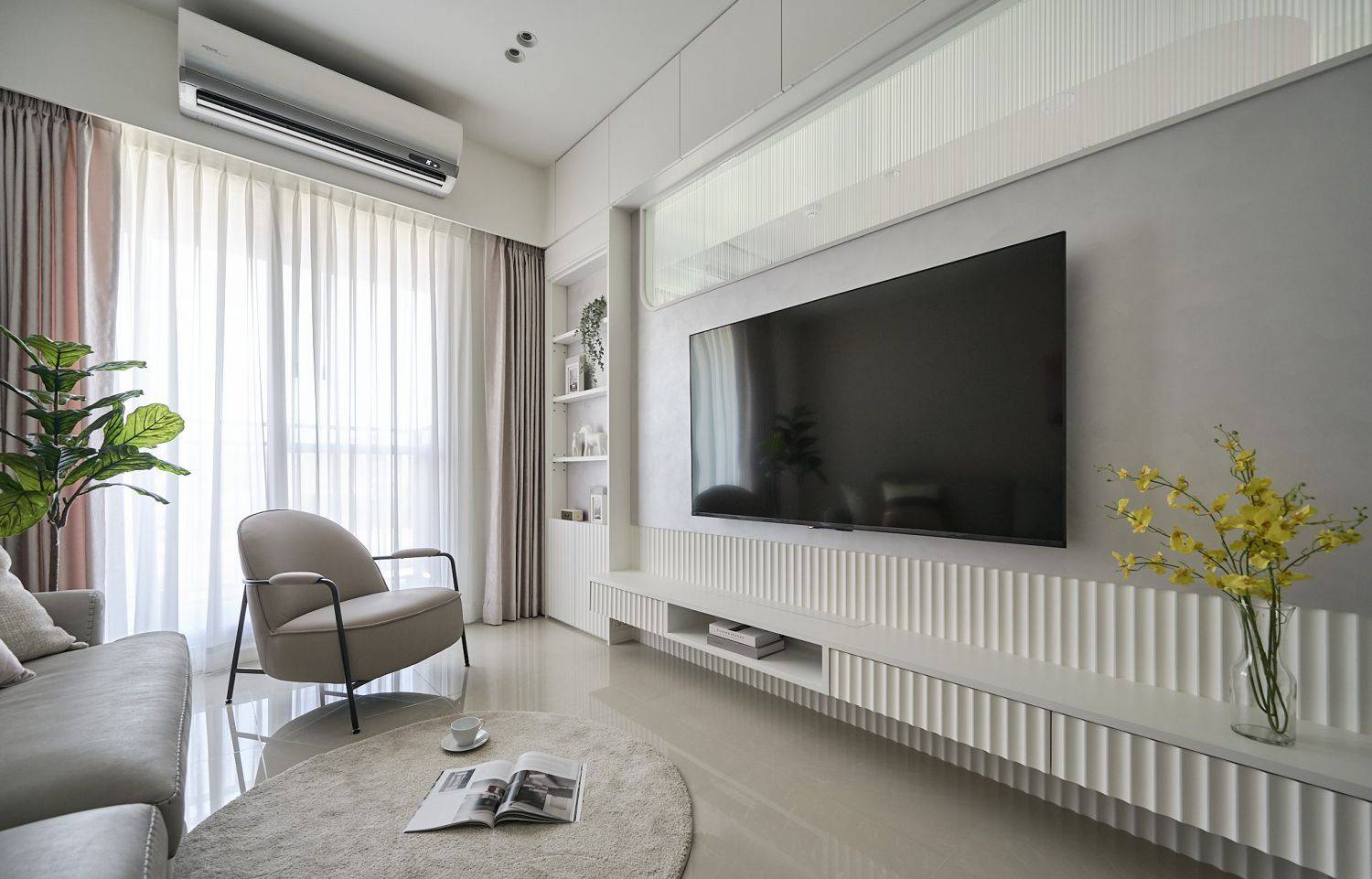 Phòng khách là không gian chính thể hiện phong cách sống của gia đình. Chúng tôi thiết kế và thi công sao cho từng chi tiết như kệ tivi, vách ốp, đèn, sofa đều hài hòa và có điểm nhấn riêng.