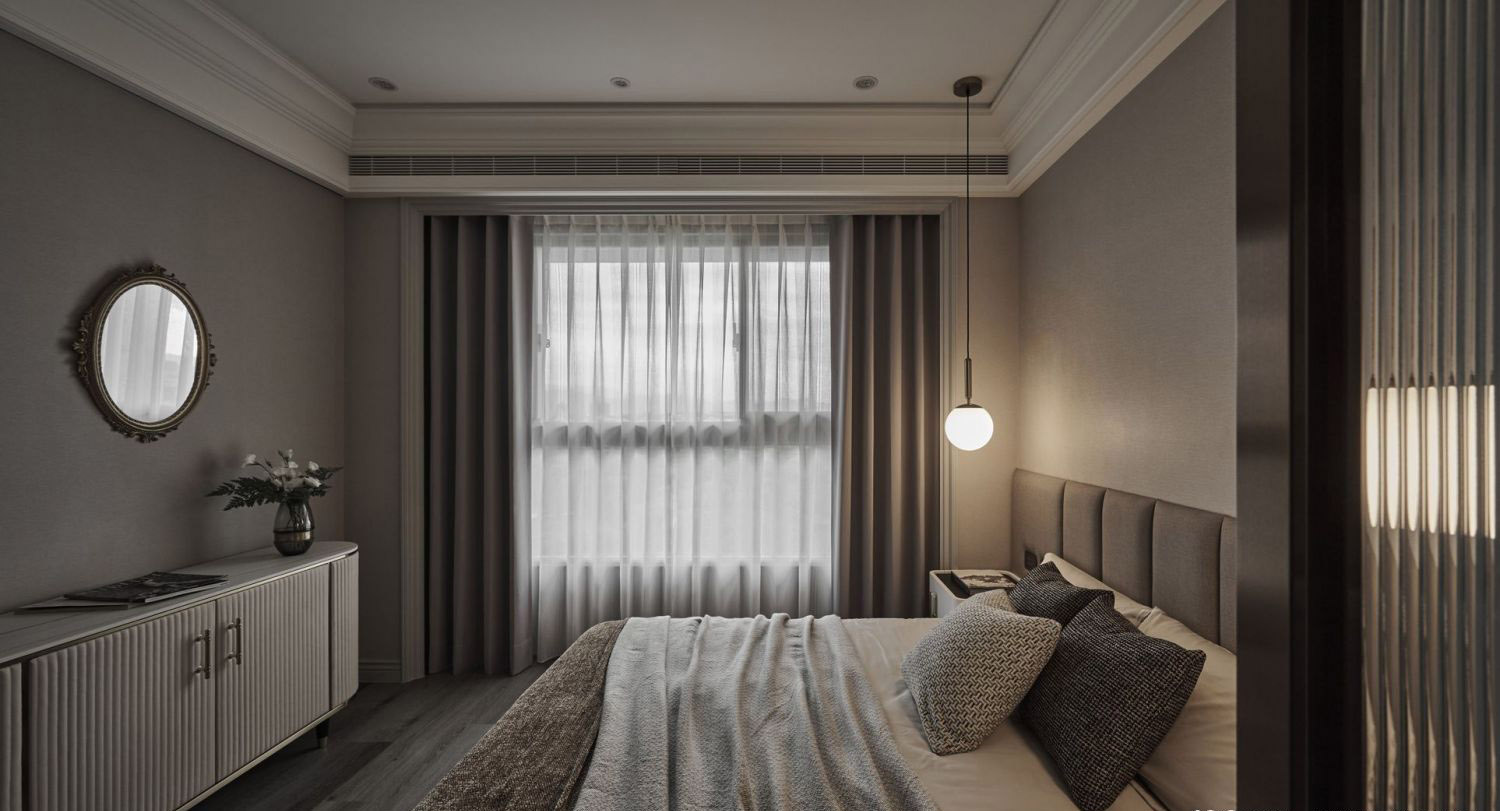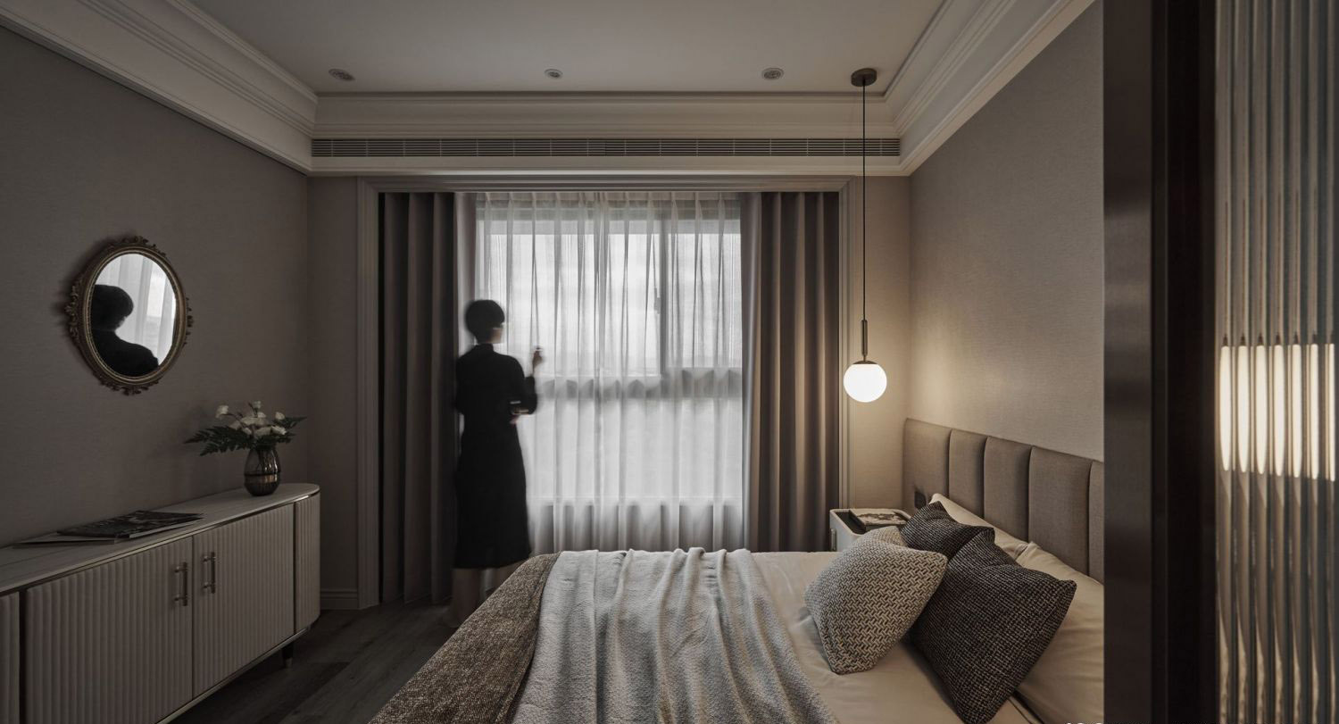 Rèm cửa: Hai lớp, tương tự phòng khách, điều tiết ánh sáng linh hoạt.