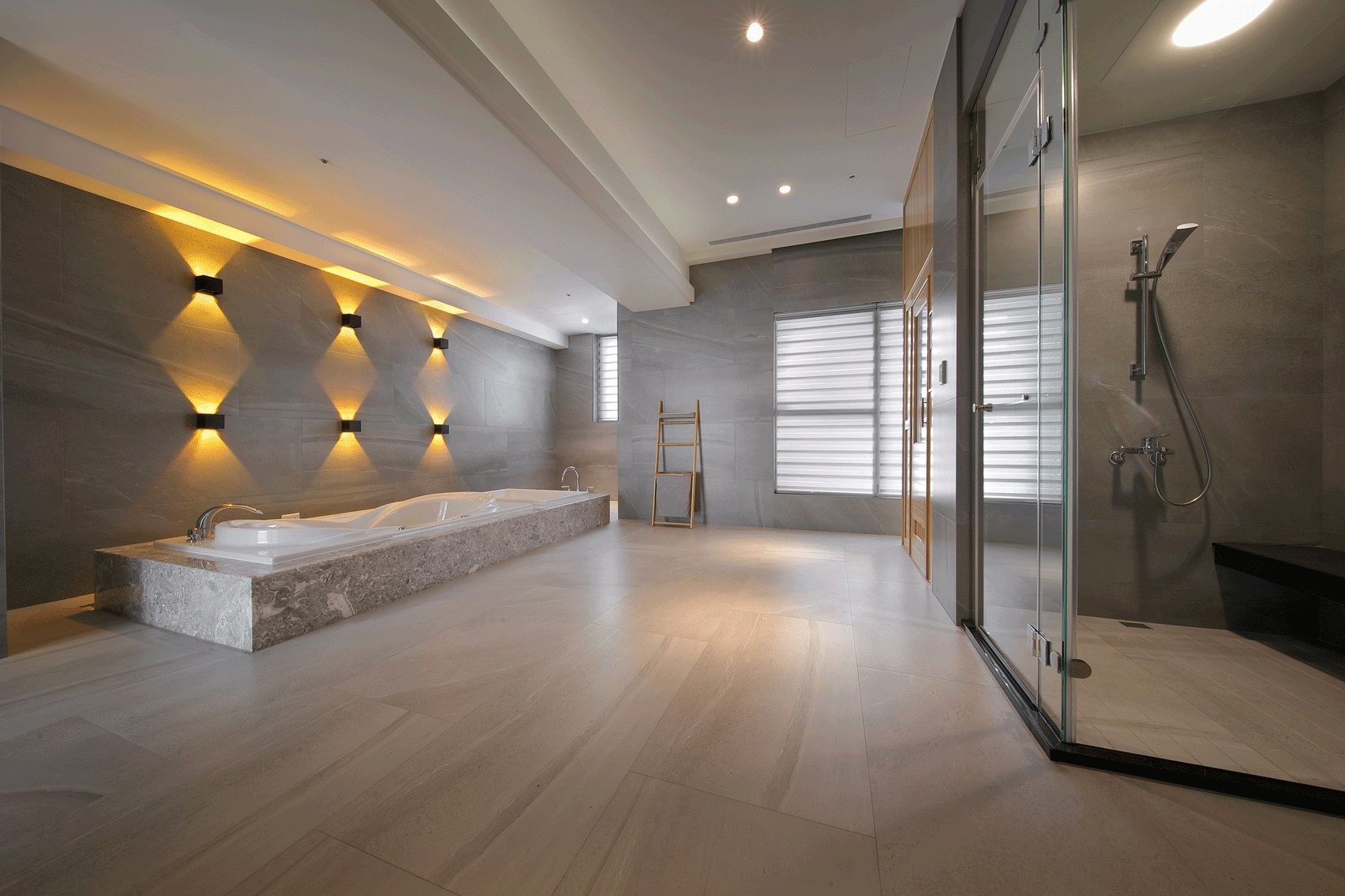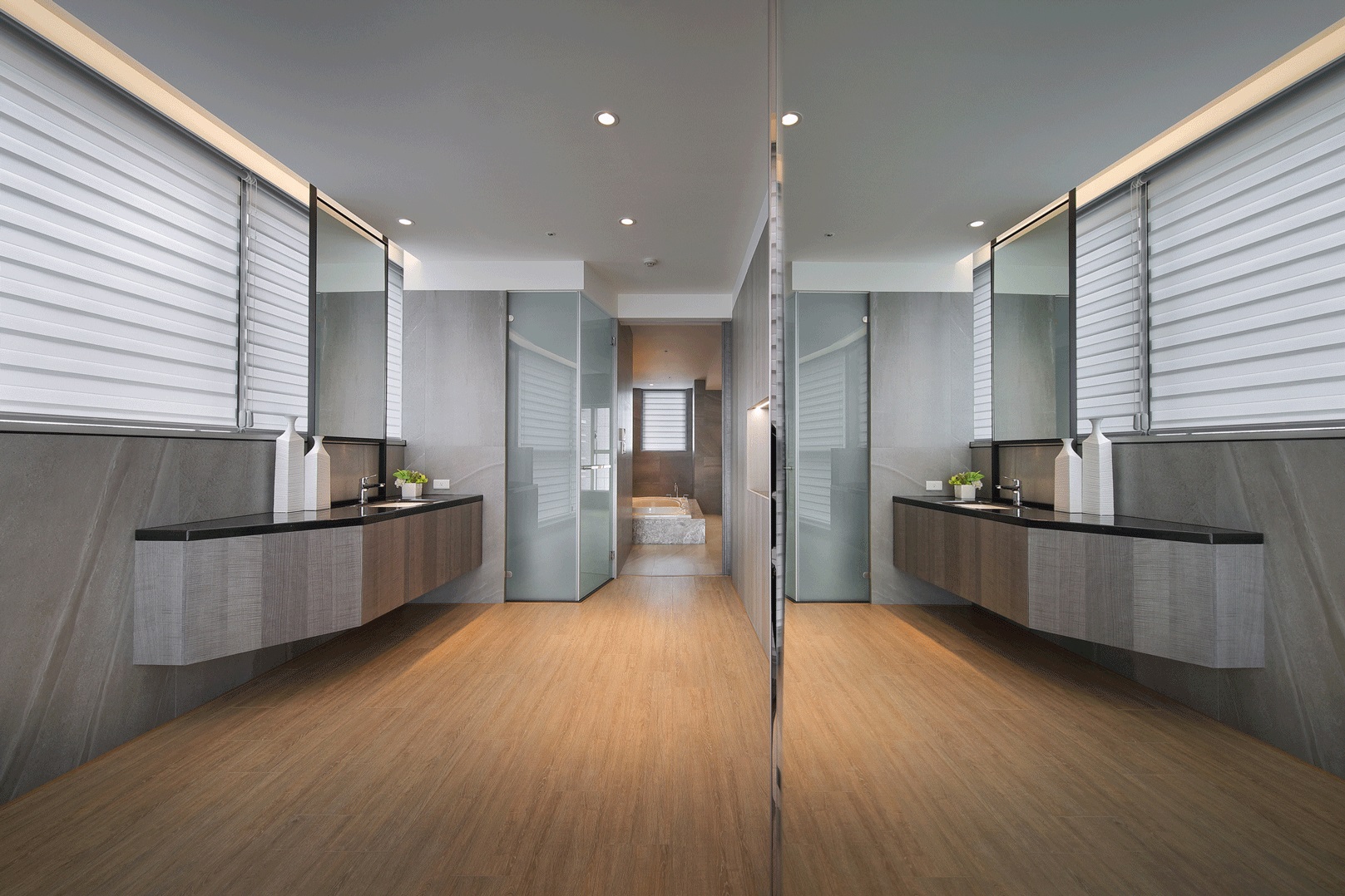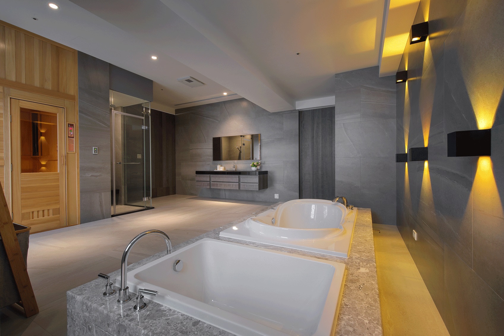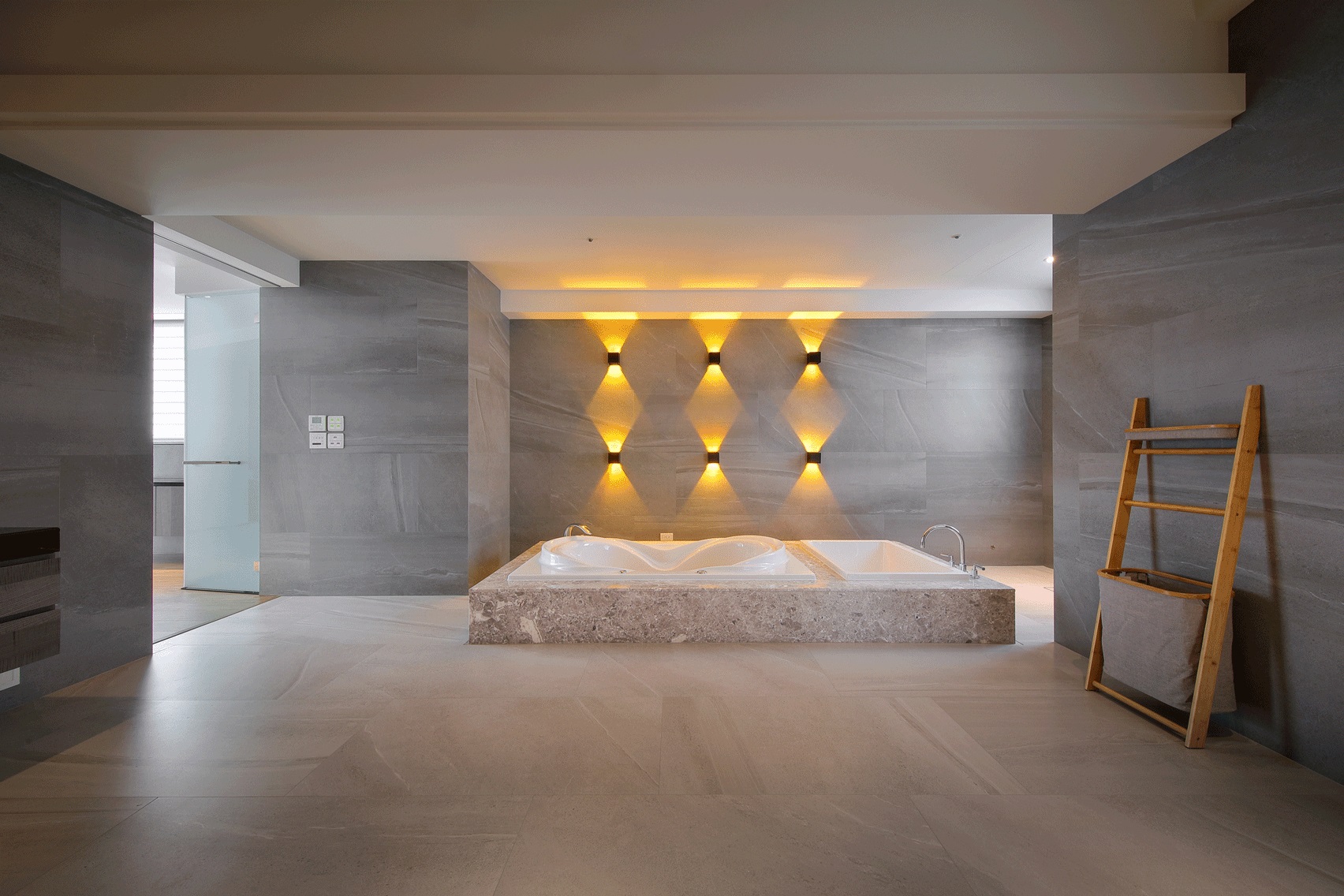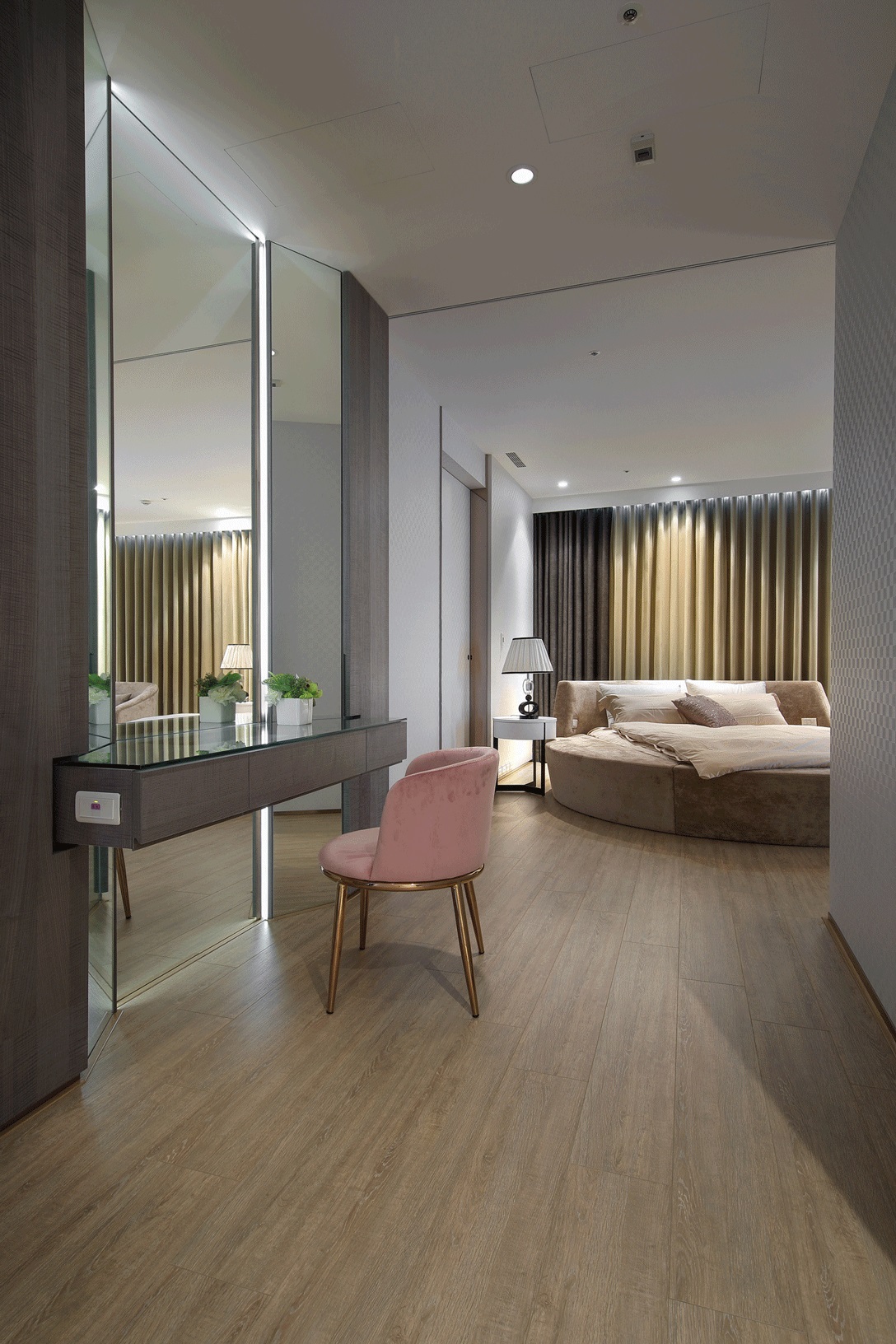 Phong cách Luxury hiện đại: Nổi bật với vách ốp đá marble đen vân trắng sang trọng kết hợp hệ kệ gỗ âm tường tinh tế, mang đến cảm giác quyền quý cho không gian đón tiếp.