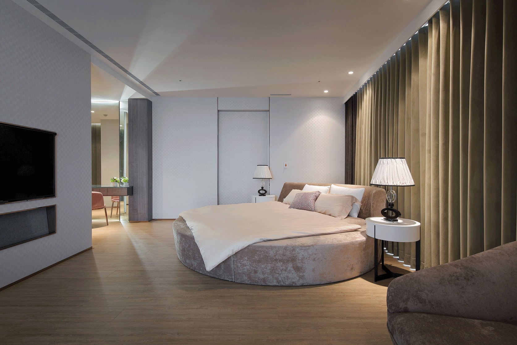 Ghế sofa vải nhung uốn cong độc đáo: Thiết kế bo tròn tạo sự gần gũi, mềm mại nhưng vẫn vô cùng phá cách, phù hợp với những gia chủ yêu thích sự mới mẻ.