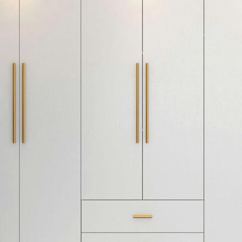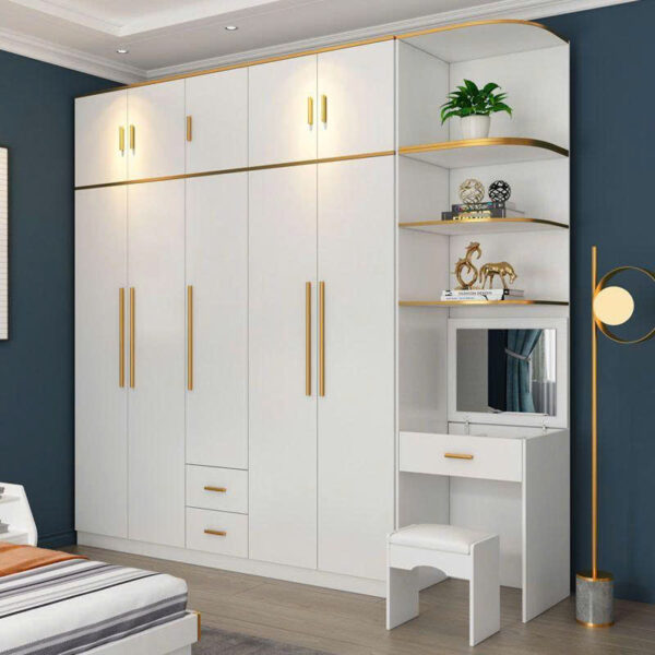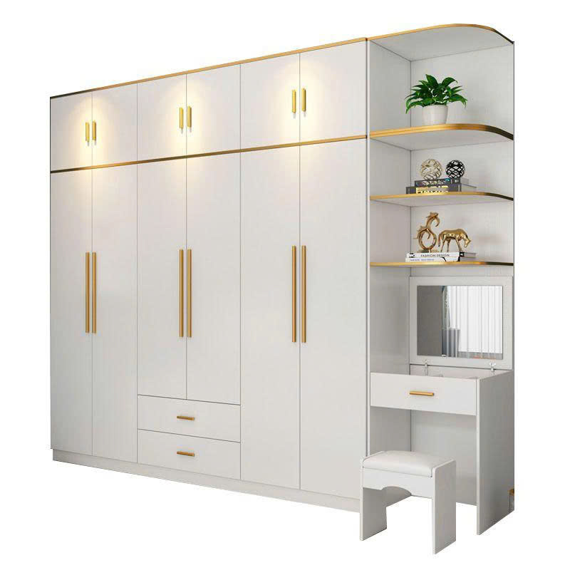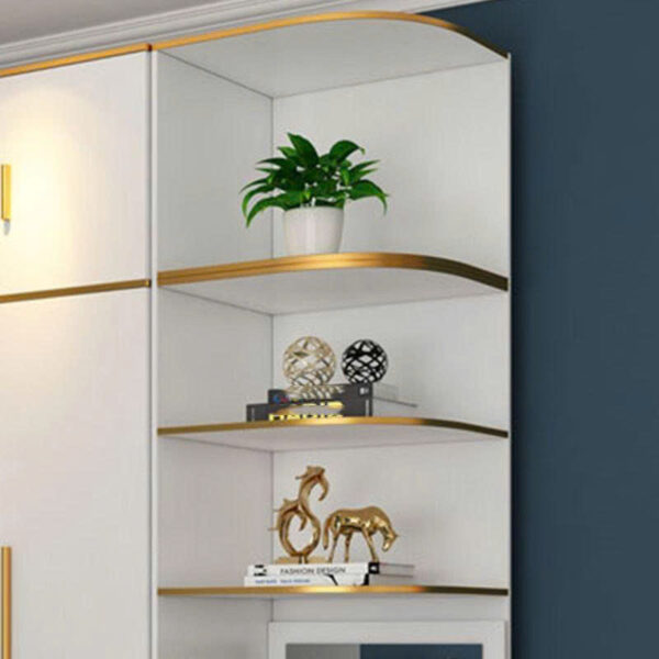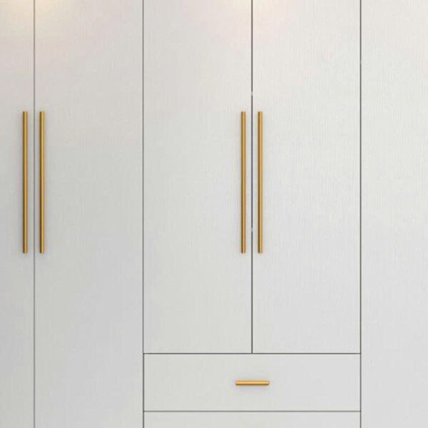 Màu trắng thanh lịch kết hợp với tay nắm và viền vàng kim tạo điểm nhấn sang trọng, phù hợp nhiều phong cách nội thất hiện đại.