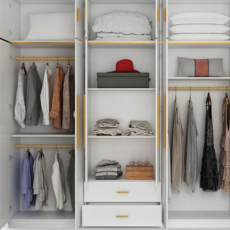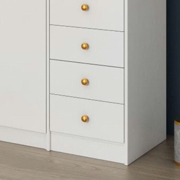 Bên trái là các khoang lớn để treo quần áo dài, bên dưới có ngăn kéo tiện lợi cho phụ kiện, đồ nhỏ.